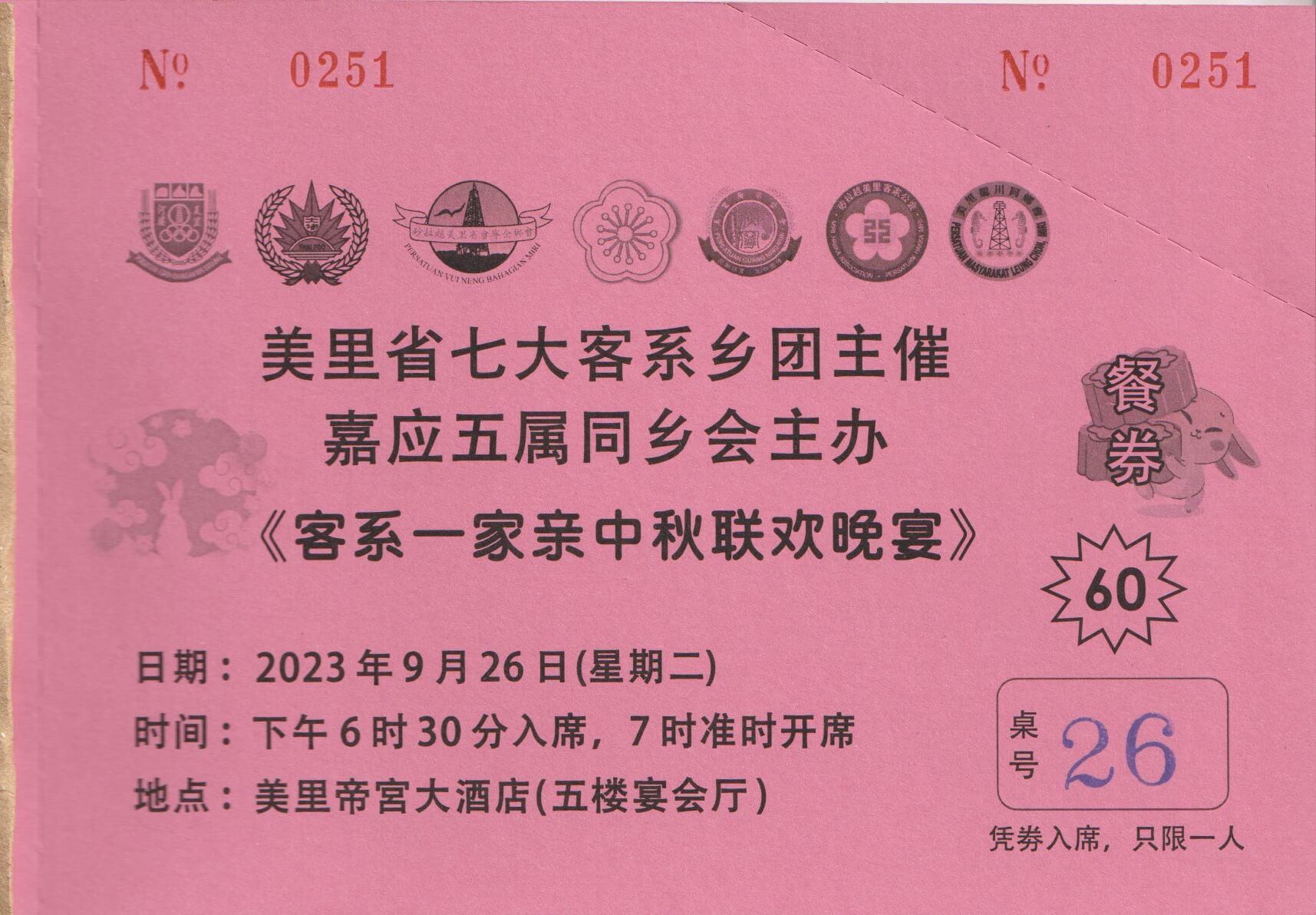 26/09/23 嘉应五属同乡会主办 <客系一家亲中秋联欢晚宴>